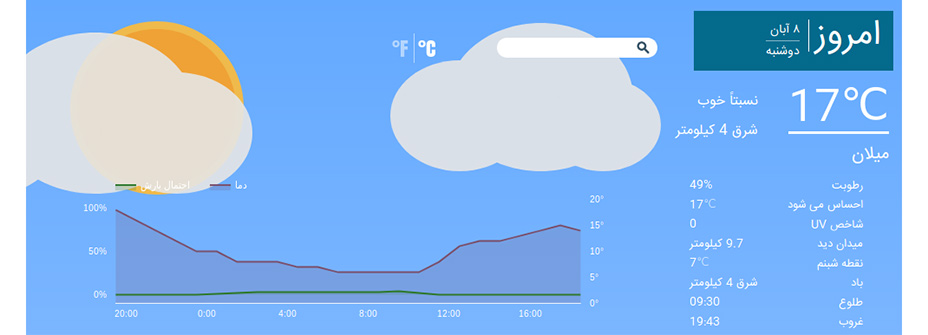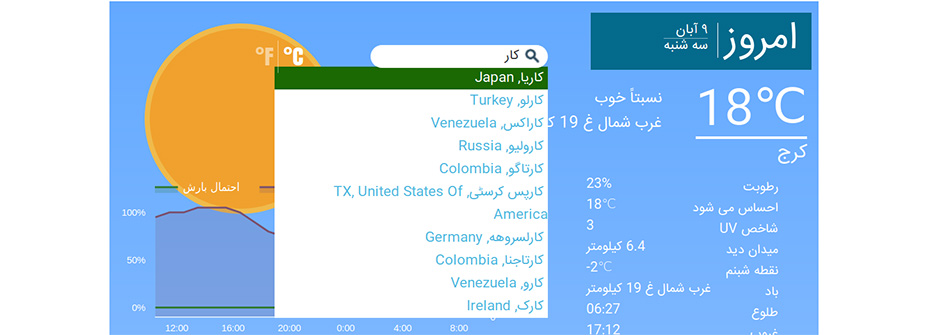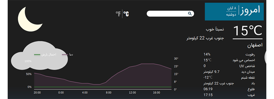 • نمایش لحظه‌ای آب و هوای منطقه مورد نظر