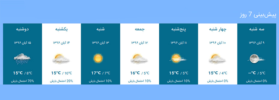 این افزونه بی نظیر به شما امکان نمایش وضعیت آب و هوای فعلی یک شهر و پیش بینی چند روز آینده را می دهد. همینطور می توانید به کاربران اجازه دهید شهر خود یا هر منطقه دیگری را به عنوان شهر پیش فرض انتخاب نموده و هر کاربر وضعیت آب و هوای شهر متفاوتی را جداگانه مشاهده نماید
