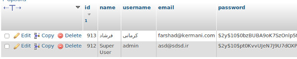 حال مرحله ساخت کاربر جدید انجام شد اما باید این کاربر را به جای کاربری که جوملا به آن نیاز دارد به جوملا بشناسانیم و راه حل آن این است که آی دی کاربر جدید را که ۹۱۳ است را به آی دی کاربر مورد نیاز جوملا یعنی ۴۲ تغییر دهیم. توجه داشته باشید این آی دی ها نمونه مثال ما هستند و ممکن است آی دی مورد نظر جوملا در پیام خطای شما و هم در هنگام ساخت کاربر جدید متفاوت باشد.