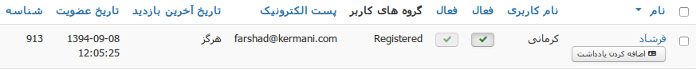 ۳- در صفحه کاربران به یاد بسپارید شناسه یا آی دی این کاربر جدید چیست چون به زودی با این آی دی یا شناسه کار داریم. در نمونه ما آی دی کاربری که ساخته ایم ۹۱۳ است.